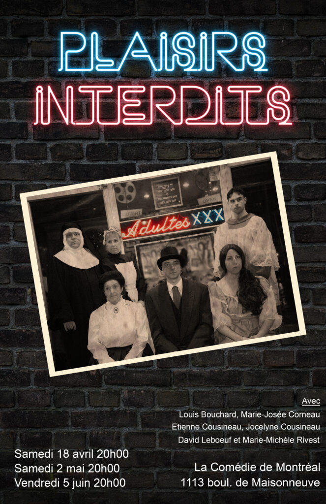 Reprenant le répertoire popularisé par Colette Renard, Plaisirs interdits vous fera découvrir des versions coquines de chansons connues de notre enfance, de chansons à répondre et de chansons du répertoire paillard. Accompagnés d’un pianiste, six chanteurs prennent un réel plaisir contagieux à chanter ces versions lubriques.